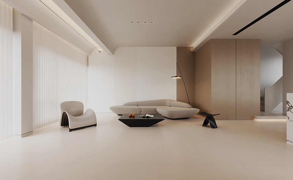 自然純粹的奶杏底紋上漂浮著點點印記,是時光賦予的溫柔,在光與影的交相輝映間,營造靈動的蓬勃韻律。