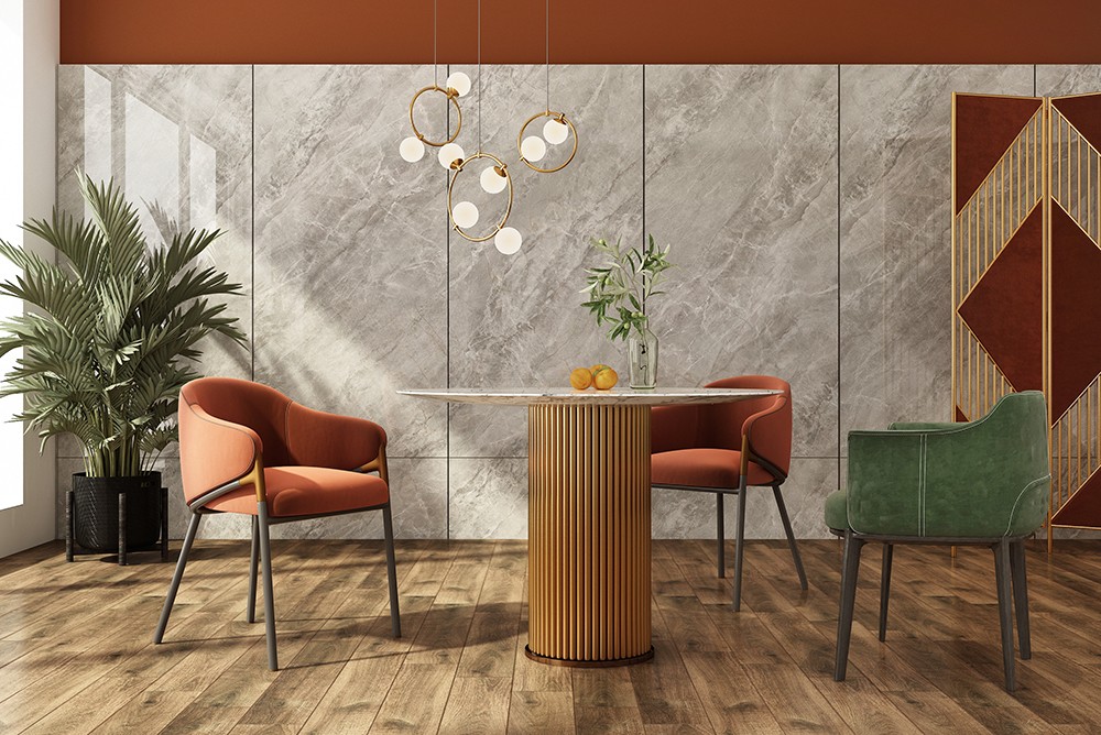 不規則的石紋脈絡,仿佛波濤洶涌的海浪,凝聚玉石天然質感與豐富層次,流水若金的磚面紋理,帶著雄渾的氣魄,激起內心澎湃,另有一番境界。