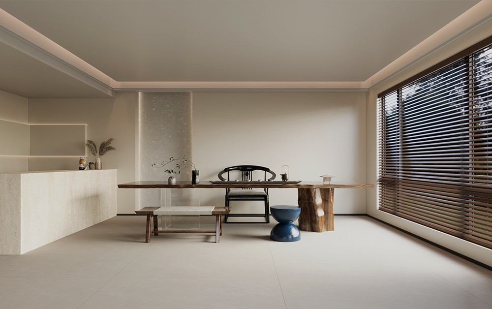 在灰色的主旋律下自帶偏暖調的棕,迷蒙的肌理明暗交纏,隱約中似是微波蕩漾的湖面,泛起點點漣漪,無不令人一見傾心。
