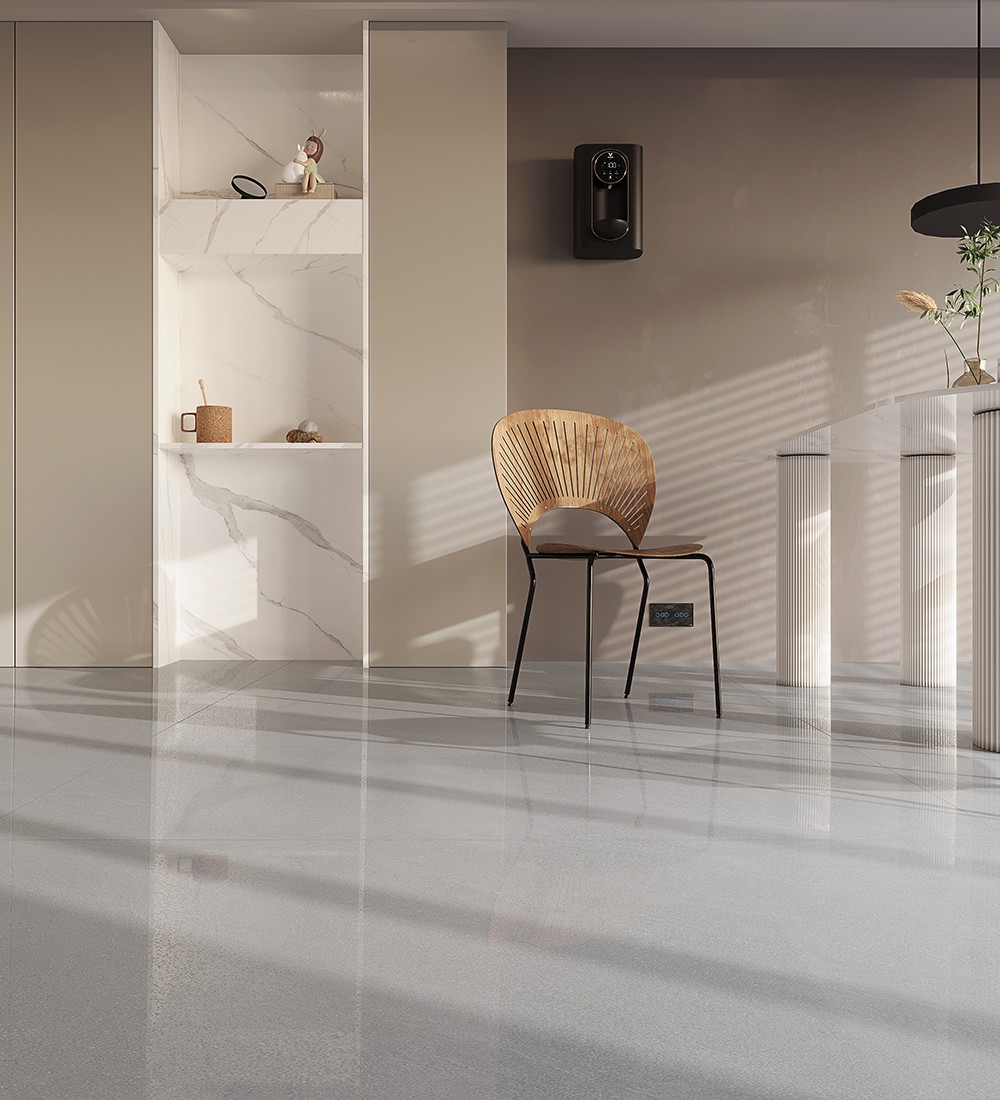 仿砂巖的設計配合鉆閃效果,為自然質感增添一些亮點,中灰色系低調冷靜,自帶砂巖硬朗的質感,是現代家居中出彩的裝飾元素。