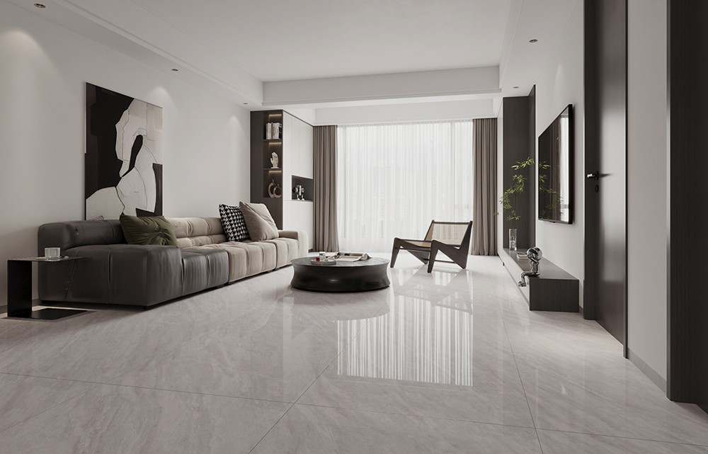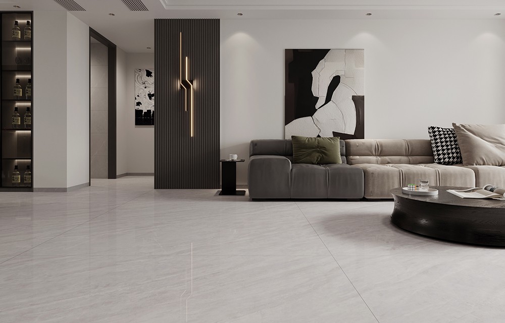 寧靜的暖灰色調,灰白紋理宛如水墨云霧,營造出簡約溫馨的氛圍。六面任意連紋設計讓紋理自然銜接、無限延伸,完美再現了天然石材的獨特美感,為追求高端品味的空間增添了一份優雅與格調。