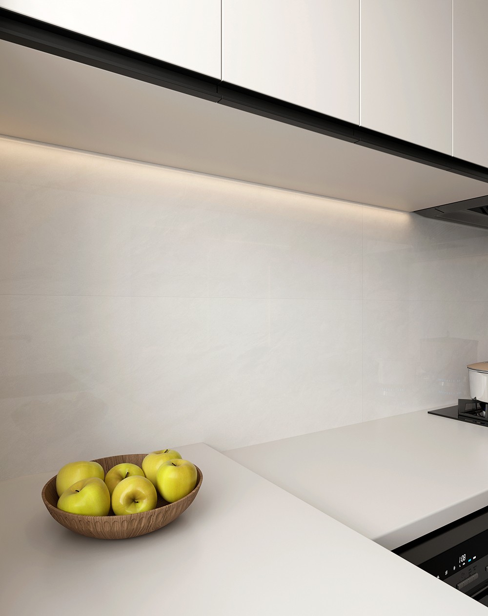 優雅的白色基底搭配淺灰色細膩紋理,經典而不失時尚感。磚面展現純正灰白色調,現代奢華,極具藝術感和視覺沖擊力。
