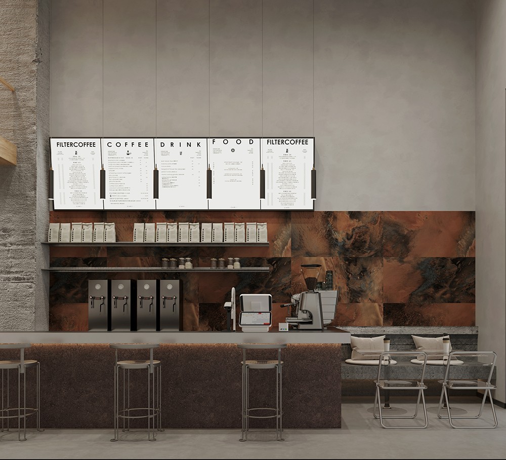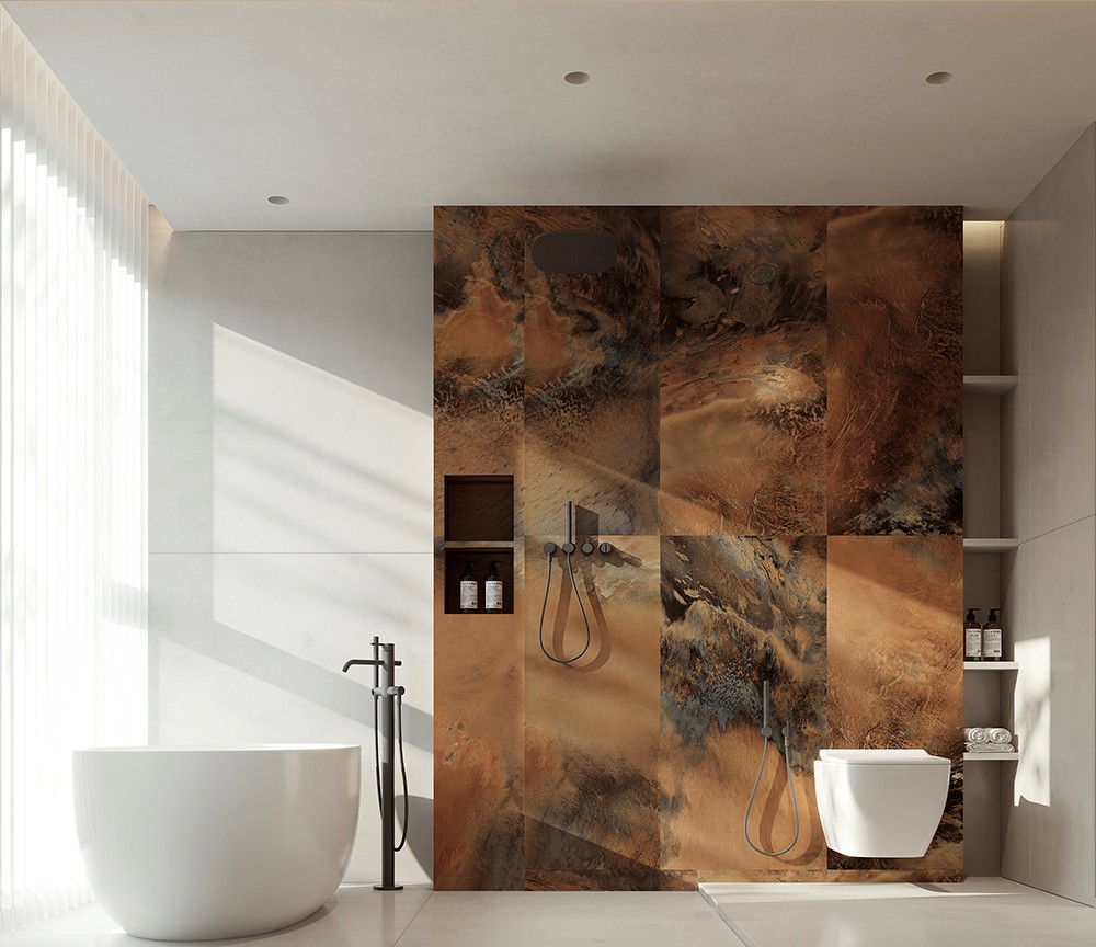 理石與金屬的材質(zhì)碰撞,打破材料的固有界限。橙灰交織,為空間增添了一抹冷峻和高貴。