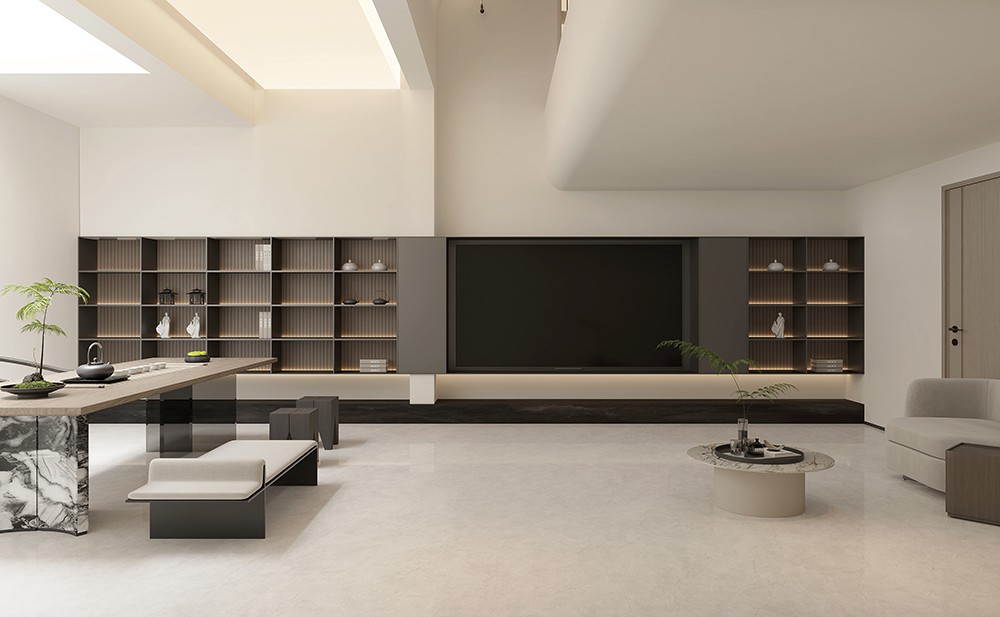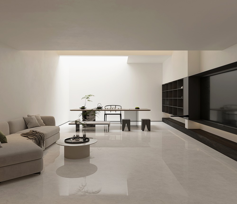 柔和的白色磚面點綴著細(xì)密的灰色線條,分布自然,呈現(xiàn)出溫和且富有層次的視覺效果,彰顯純凈而質(zhì)樸的質(zhì)感。